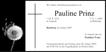 Anzeige Veronika Popp geb. Heß